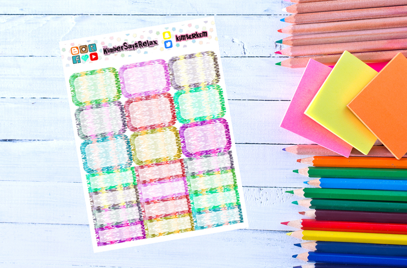 Total of 21 stickers, 9 half boxes and 12 quarter boxes. Sheet size is approximately 5in x 7in.