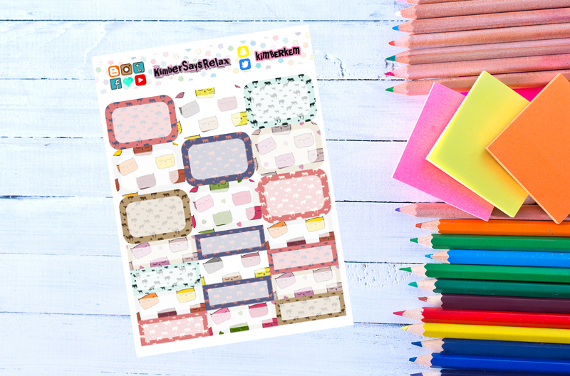 Total of 21 stickers, 9 half boxes and 12 quarter boxes. Sheet size is approximately 5in x 7in.