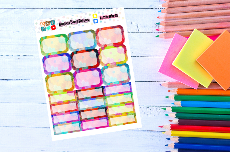 Total of 21 stickers, 9 half boxes and 12 quarter boxes. Sheet size is approximately 5in x 7in.