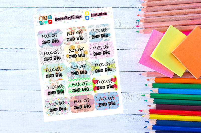 Stickers are kiss cut and printed on non-removable satin sticker paper. White outline around stickers is to show cut line only.